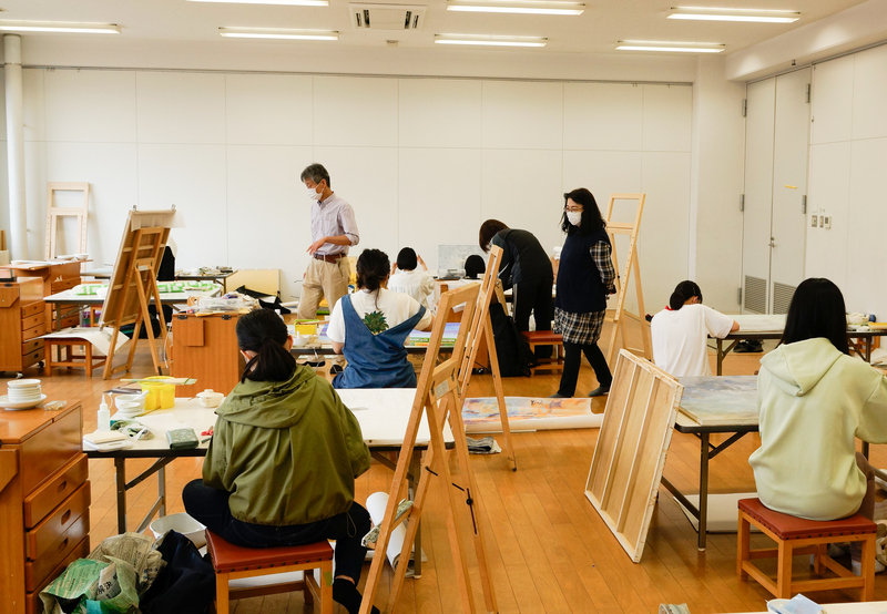 日本画コースは、基本的な専門技術を修得させ、現代の表現として展開し、個性豊かに創造し得る力を育てることを目指しています。在学中は最も多感な時期であると考えます。これからの長い作家活動をしていく上での大切な一助となるべき教育を行います。