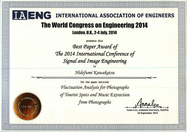 本学の経済情報学科 川勝英史教授が、国際会議WCE2014(The World Congress on Engineering 2014、ロンドン)へ論文を投稿され、「Best Paper賞(WCE2014)」を受賞しました。