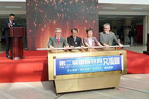 2017年10月16日(月)、17日(火)、中国の大連外国語大学で開催された「第2回国際教育交流週間」に本学の藤沢副学長、邵国際交流センター長、大連外国語大学からの留学生である陳トウ童さんが参加しました。オープニングセレモニーでは、藤沢副学長が参加8ヶ国18大学を代表して挨拶しました。その後、李凡国際交流処長、孟海霞日本語学院副院長、謝風媛経済管理学院副院長、謝広宜ソフトウェア学院書記長と両大学の交流及び留学生交換等について意見交換を行いました。