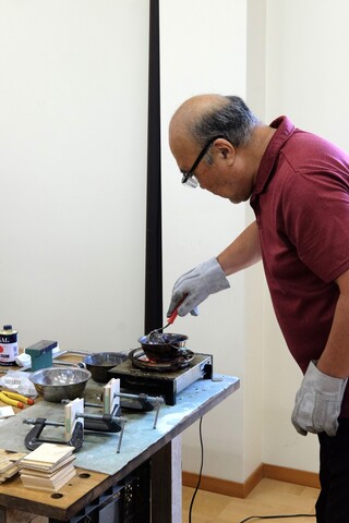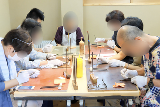 8月24日(土)、美術学科デザインコース桜田知文教授、林宏准教授による公開講座「ウルシ塗りの箸とスズ鋳物の箸置きを作ろう!」が行われました。