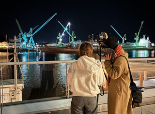 向島ドックは、「これまで単色を基調としたライトアップを行ってきた中で、今回、尾道市立大学の視点を取り入れることで、新たな表現や物語性を加え、地域に親しまれる景色づくりへと発展させていくとともに、学生との協働を通じて地域交流・社会貢献の一環としたい。」と説明しました。