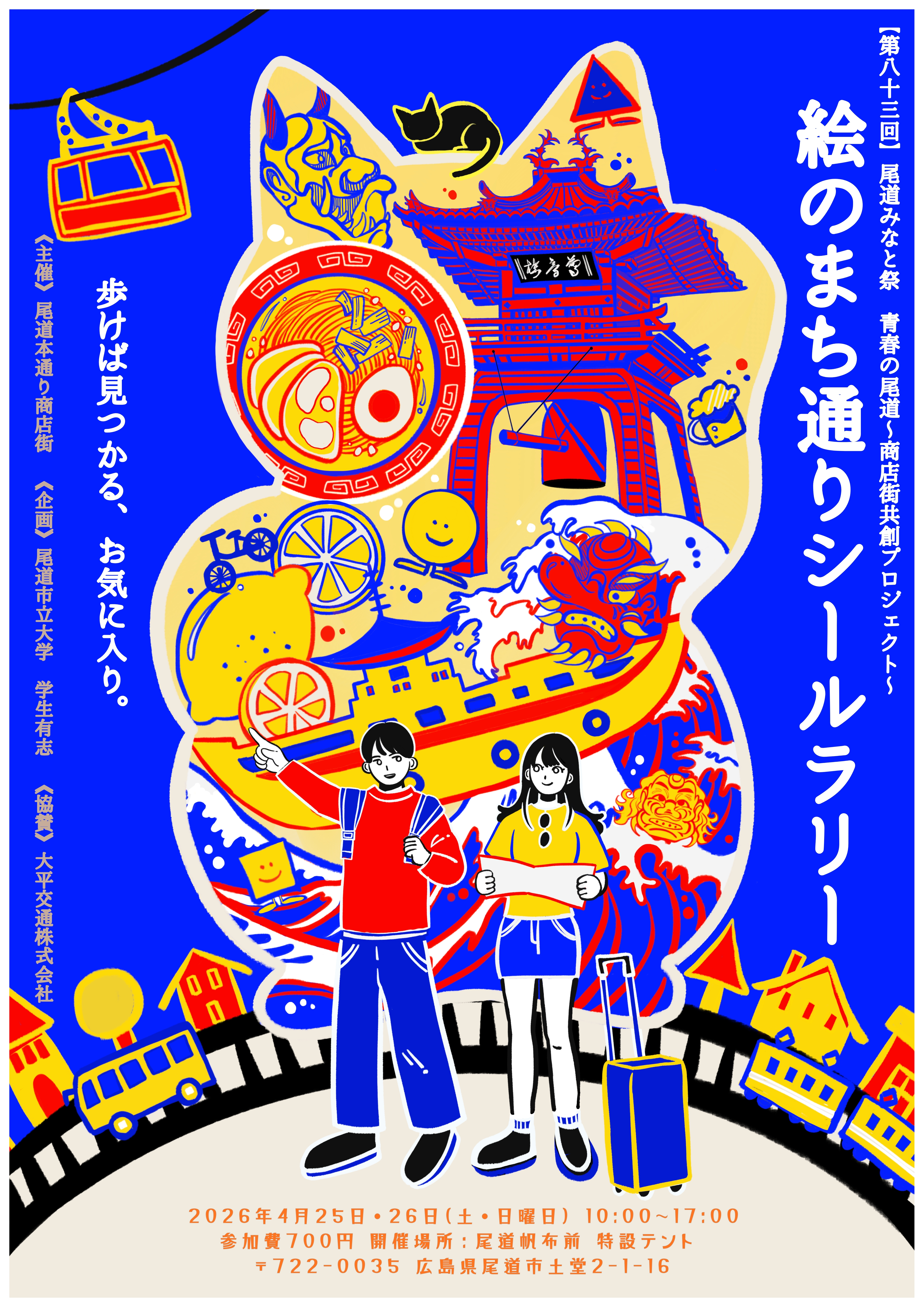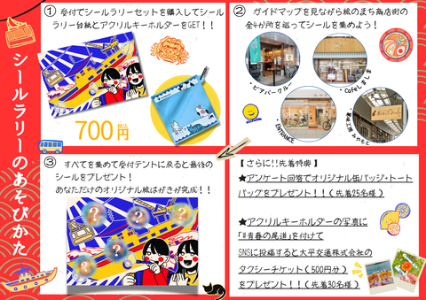今年は尾道本通り商店街にて「青春の尾道~商店街共創プロジェクト~」と題して、学生考案の絵のまち通りシールラリーを行います。